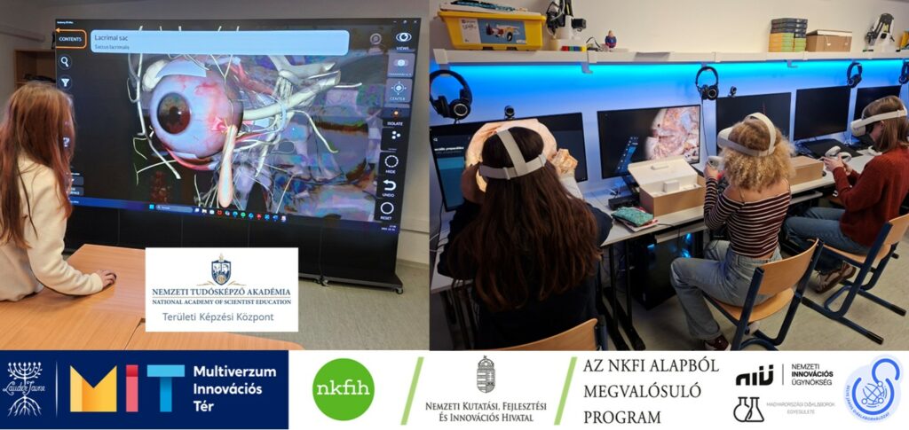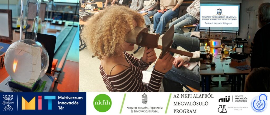 Az alapfogalmaktól indulva, kísérleteken keresztül tanulmányoztuk a szem működését, a képalkotás tudományos hátterét. A látványos bemutatók, kipróbálható feladatok hozzájárultak a korábban tanultak rendszerezéséhez. A Lauder Multiverzum Innovációs Tér modern oktatástechnológiai eszközei – LED-fal, VR-szemüvegek – éppúgy szerephez jutottak, mint a tudománytörténeti relikviáknak számító szemléltetőeszközök.