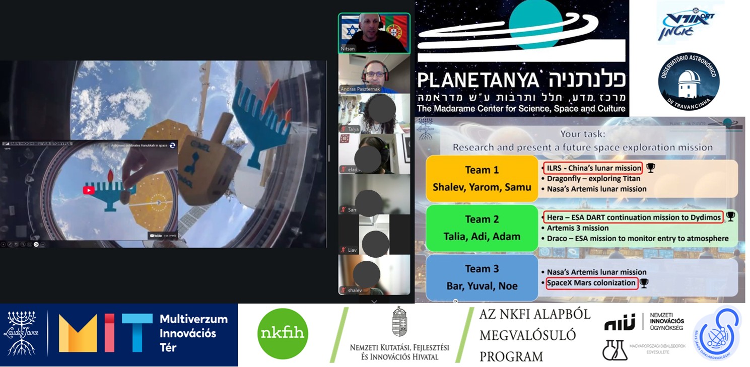 December 9-én, kedden folytatódott a netánjai Planetanya planetárium által szervezett nemzetközi online űroktatási program. Ezúttal a netánjai ORT Guttman Iskola és a Lauder Javne Iskola diájai voltak jelen a virtuális tanteremben.