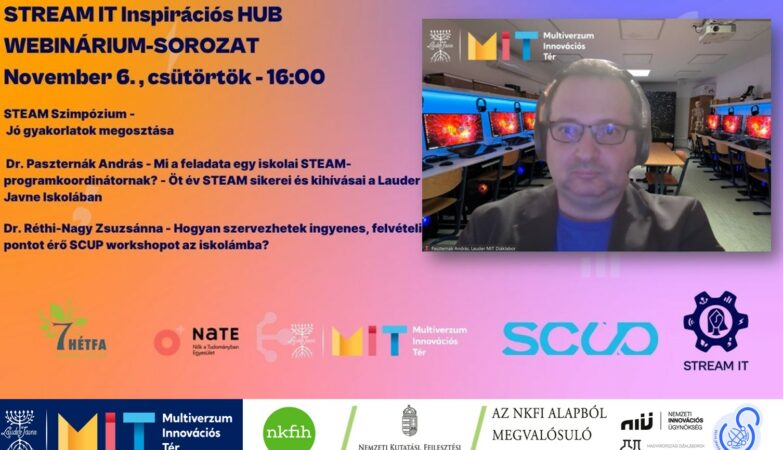 Március 28-án a Szabad Iskolákért Alapítvány akkreditált Alternatív pedagógiák továbbképzésének résztvevői jártak a Lauder MIT Diáklaborban Dobrovitzky Katalin tehetségfejlesztő-speciális pedagógus és Szőllős Kata elemitagozat-vezető szervezésében és kíséretében. A Diáklabor oktatási célkitűzéséről és programjairól Paszternák András nyújtott tájékoztatást. Szakmai vezetőnk áttekintette az eddigi mérföldköveket és az ismeretterjesztő élményközpont előtt álló feladatokat. Vendégeink átfogó képet kaptak a tudományos élménynapok során használt modern eszközök gyakorlati alkalmazásáról a robotkaroktól a VR-szemüvegekig. Zárásként a kék elemekből álló képzelet játszóteret és a 3D-s z-Space terminálokat próbáltuk